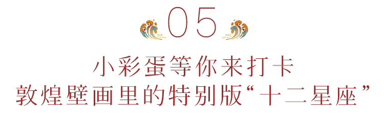 展厅接近出口的位置,有一面国风“星座墙”,图案是取自莫高窟第61窟(没错,就是画着《五台山图》的那座宝藏洞窟)甬道两壁的黄道十二宫。