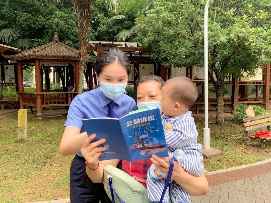 ▲检察干警为社区居民讲解公益诉讼检察知识