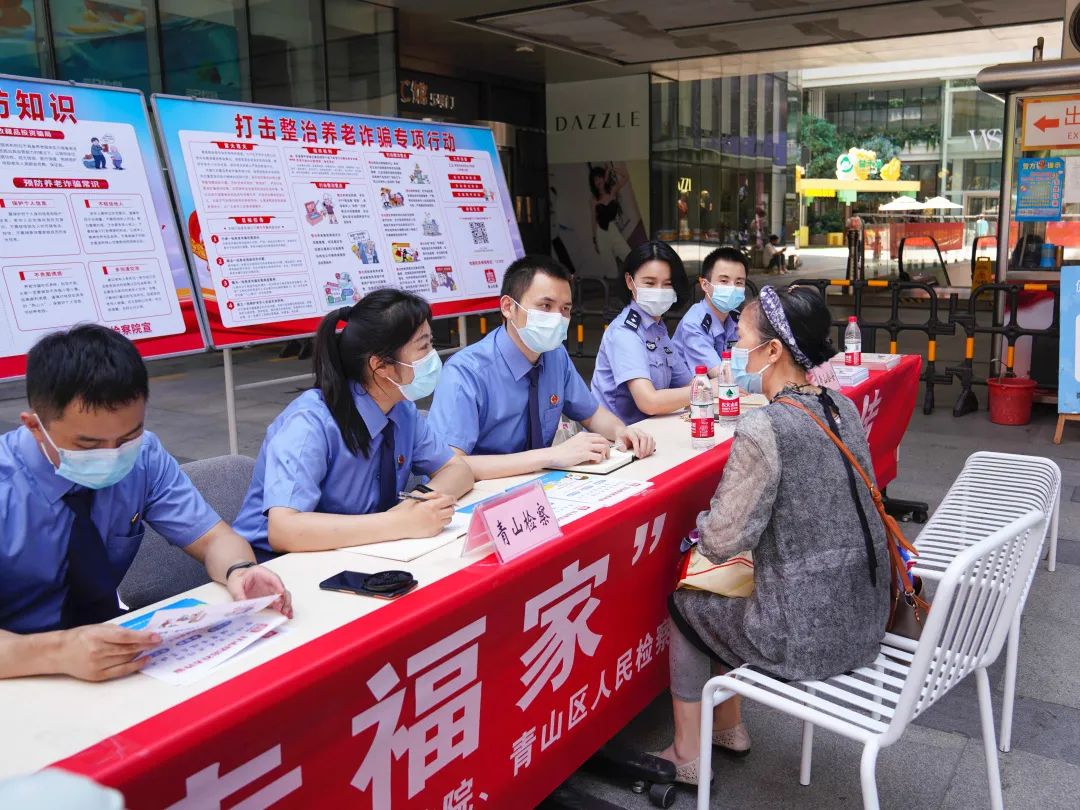 ▲检察干警在辖区商圈开展防范养老诈骗主题宣传活动