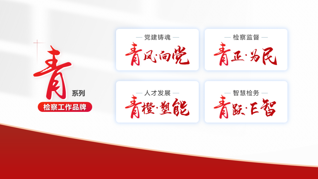 创新检察特色品牌。坚持深度培育、特色引领,打造“青”系检察工作品牌,内容涵盖“青风·向党”“青正·为民”“青橙·塑能”“青跃·E智”的党建、业务、队伍和智慧检务四品创建,为检察事业的发展注入生机和活力。