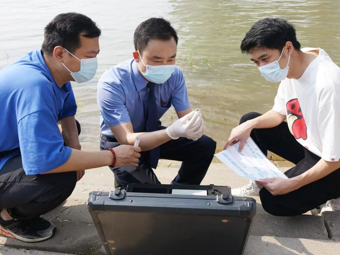 ▲公益诉讼检察官正在使用试剂提取饮用水源地水样