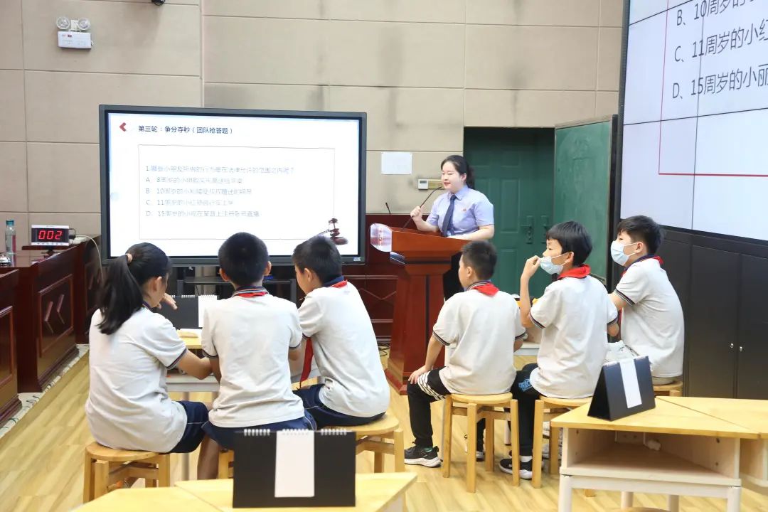 ▲未检检察官走进辖区小学,开展“携手落实‘两法’ 共护祖国未来”法律知识竞赛