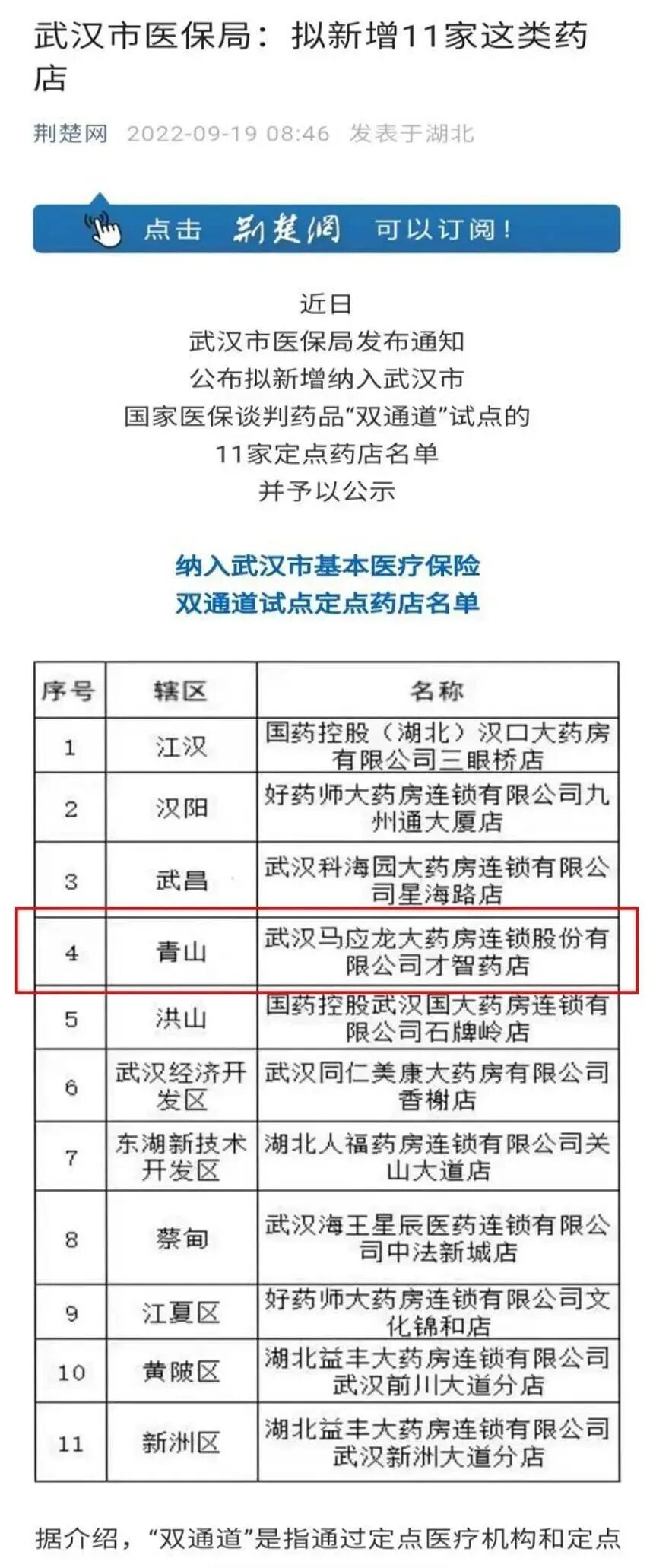 聚焦重症患者需求。2020年疫情期间为解决门诊慢特病人员跨区就医购药不便,在当时全区未配置门诊慢特病药房的情况下,青山区医保部门通过积极与市医保局请示汇报,市医疗保险中心1个月时间内分3批分别将青山区门诊慢特病药店新增开通到1家、2家和8家,并协调马应龙才智药店通过互联网线上就医购药、线下配送药品的功能为慢特病人员配送药品1.2万余人次,有力保障了全区4.9万慢特病人员疫情期间正常用药。今年9月支持具备条件的马应龙才智药店积极申请,成为全区唯一1家国家医保谈判药品“双通道”定点零售药店,填补了青山区内参保人员无法就近购买“双通道”药品空白。