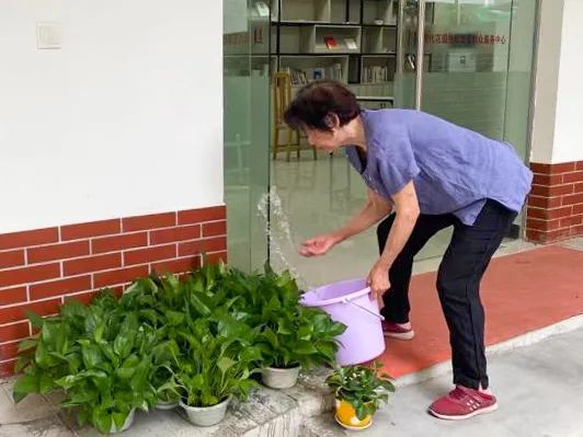 ▲居民为小区驿站绿植浇水