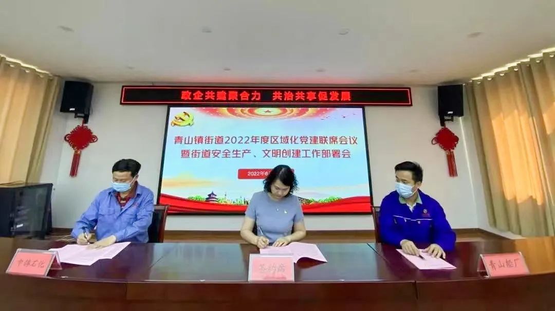 ▲青山区青山镇街道召开2022年度区域化党建联席会