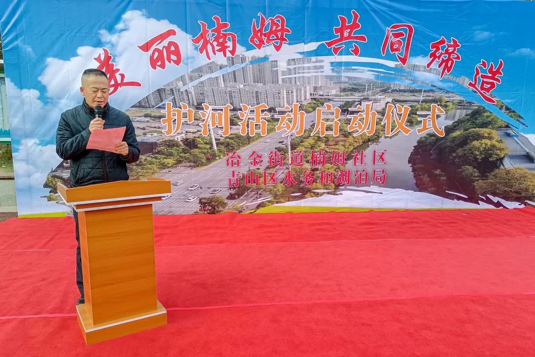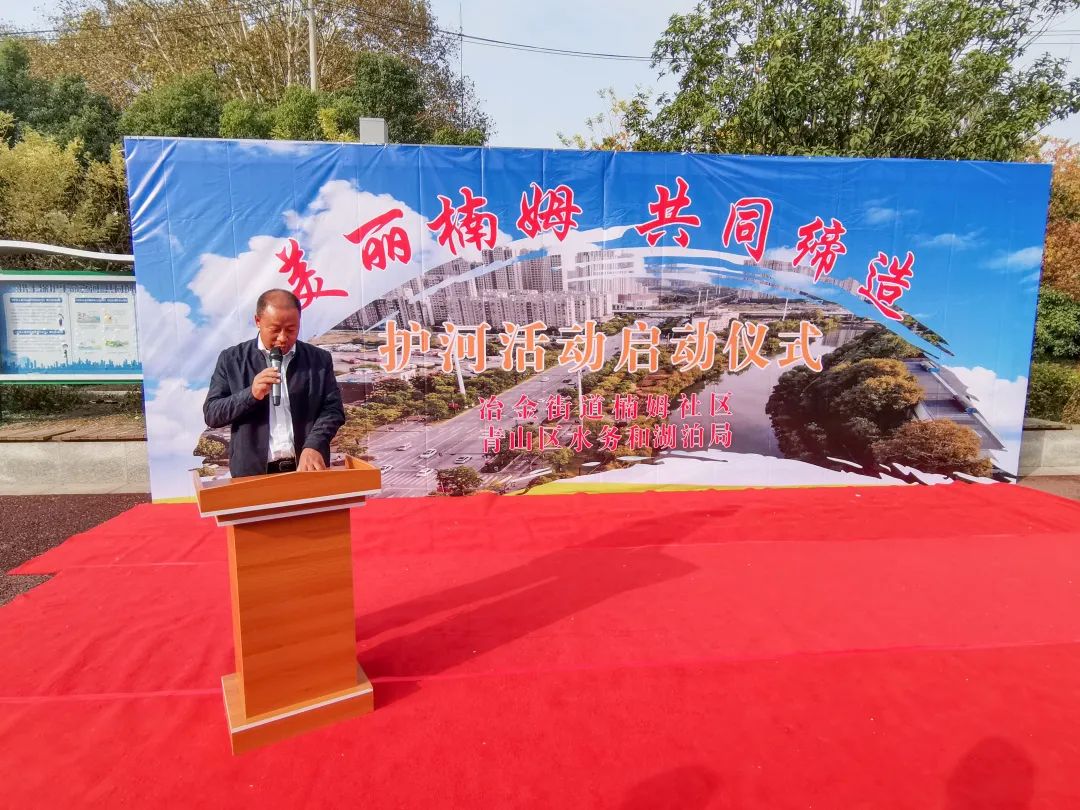 相约青山港,共护“最美河湖”,武汉市青山区水务和湖泊局联合冶金街道楠姆社区,在落步咀闸休闲广场联合举办,“美丽楠姆·共同缔造” 护河活动启动仪式 。