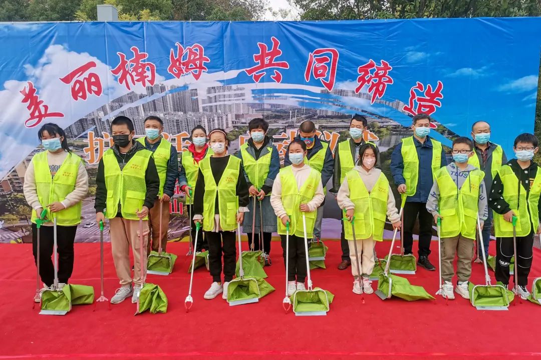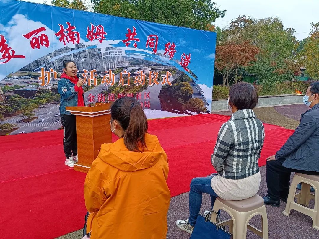 作为守护社区美好环境的重要力量,由楠姆社区居民组成的护河保绿志愿队也派出居民代表上台作表态发言。
