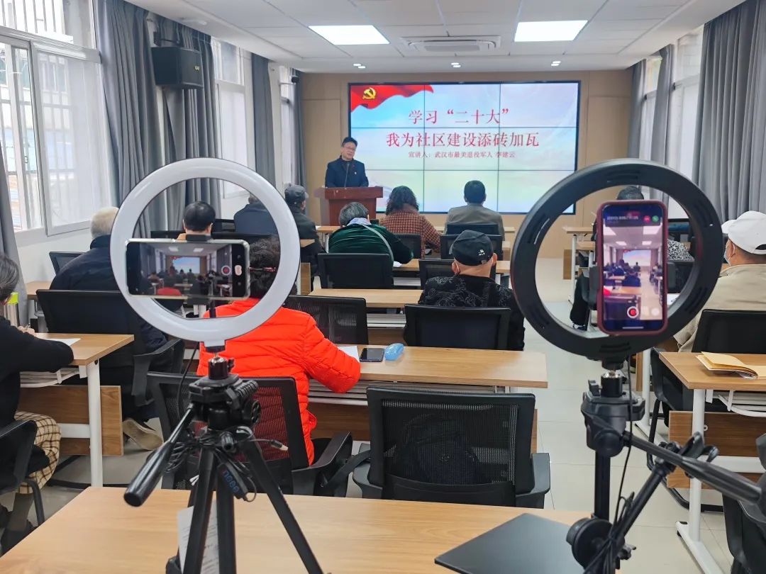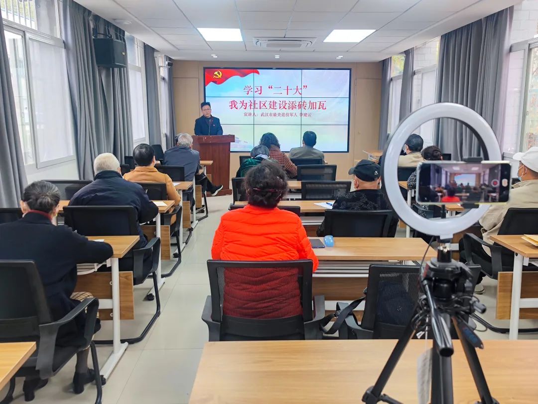 武汉市“最美退役军人”李建云讲述了自己在社区参与志愿服务的种种经历,诠释了“退役不褪色”的新时代军人风貌,表示将继续践行“若有战、召必回、战必胜”的铮铮誓言,以实际行动深学细悟党的二十大精神。