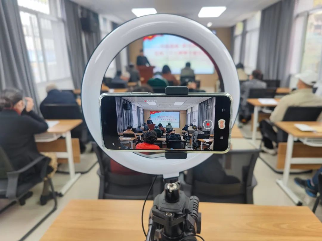 台上宣讲精彩生动,台下听众倍受鼓舞,网上聆听入心入脑。宣讲现场,两台实时录播的手机支架也格外醒目。