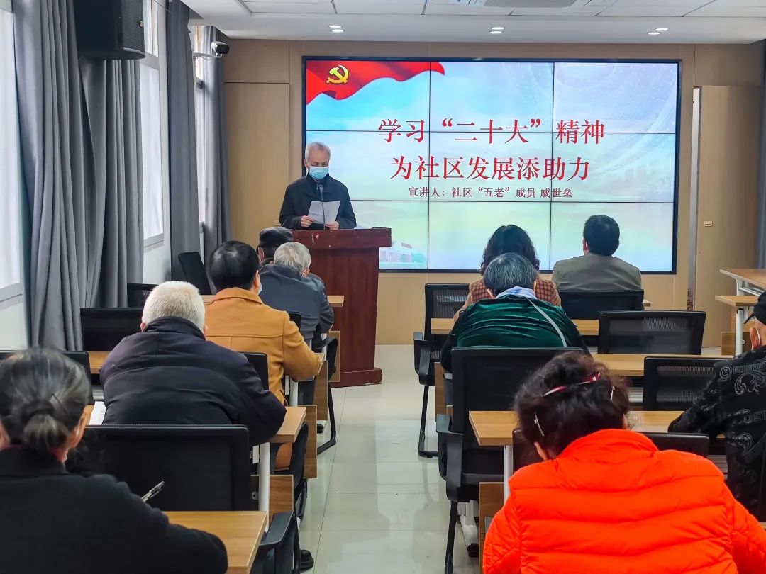 “虽然我已经退休了,但是退休不褪色,我以后也会以党的二十大精神为引领,为社区贡献自己的一份力量!”社区“五老”成员戚世垒结合自身实际情况,简短精悍地讲述了自己对党的二十大报告的理解,并传达出继续发挥余热、为社区建设助力的美好希望。
