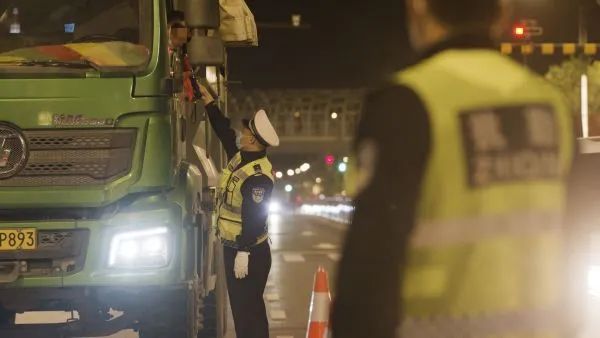 ▲青山交警专项整治大货车、渣土车违法违规问题