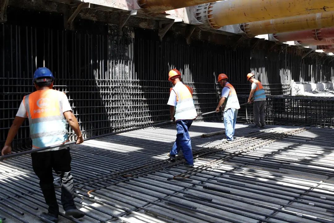 9月6日,武汉地铁新港线一期万家咀站一片繁忙景象,6台大型挖掘机交叉作业,从19米深基坑接力转运渣土,车站第4块底板正在绑扎钢筋。据悉,这是新港线一期工程首个进行主体结构施工的车站,为后期盾构施工奠定了坚实基础。