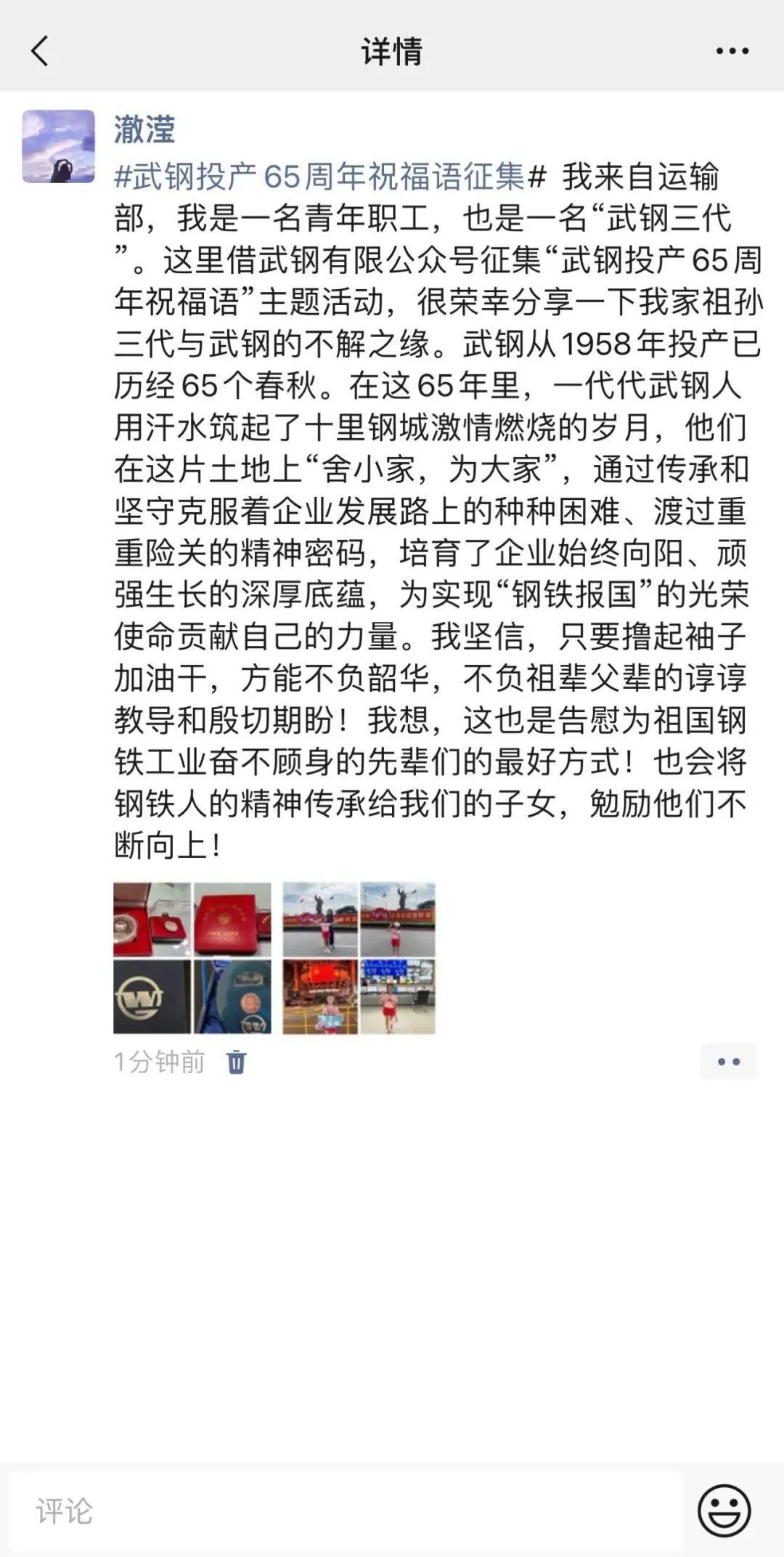 9月13日,对武钢来说是个特别的日子,具有特殊的意义。1958年第一炉铁水在一号高炉喷薄而出,向全世界宣告新中国的钢铁长子横空出世。2023年9月13日,武钢迎来了投产65周年之庆。