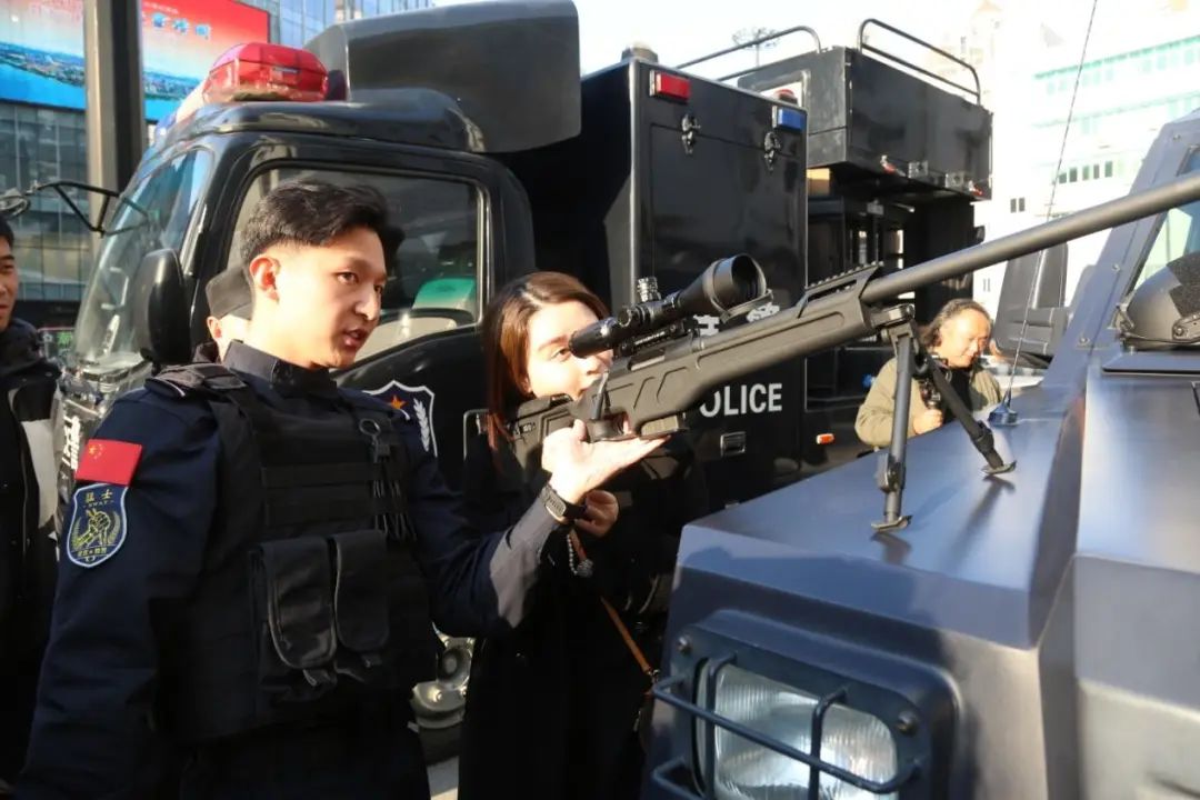 △市民近距离体验特警装备