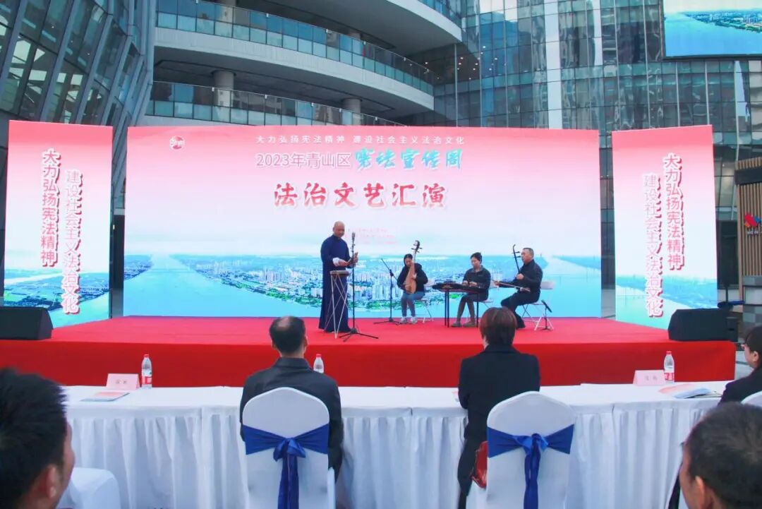 本次活动由青山区委全面依法治区委员会主办,青山区委政法委、青山区司法局承办,荆楚网(湖北日报网)、武汉市说唱团协办。