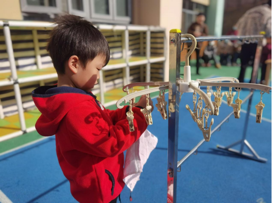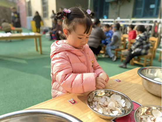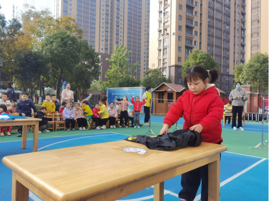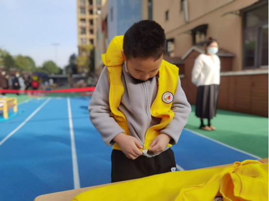 中班小朋友们需要完成拉拉链、挂衣服、叠衣服、夹毛巾和剥鹌鹑蛋五项任务。只见他们全神贯注、一丝不苟,流畅的动作一气呵成,令前来观摩的家长们赞叹不已。