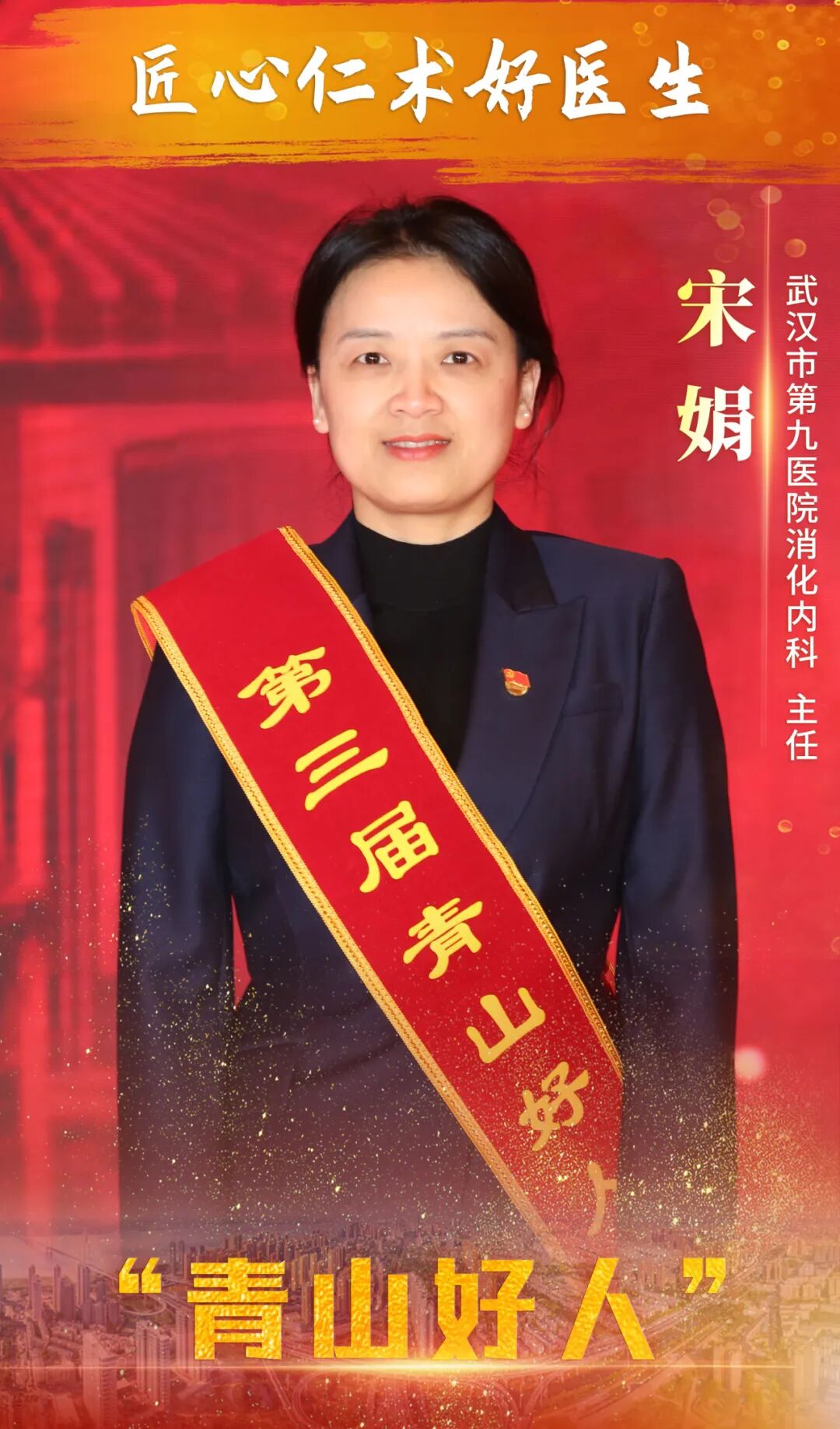 宋娟,女,1979年1月出生,中共党员,武汉市第九医院团委书记、消化内科主任。