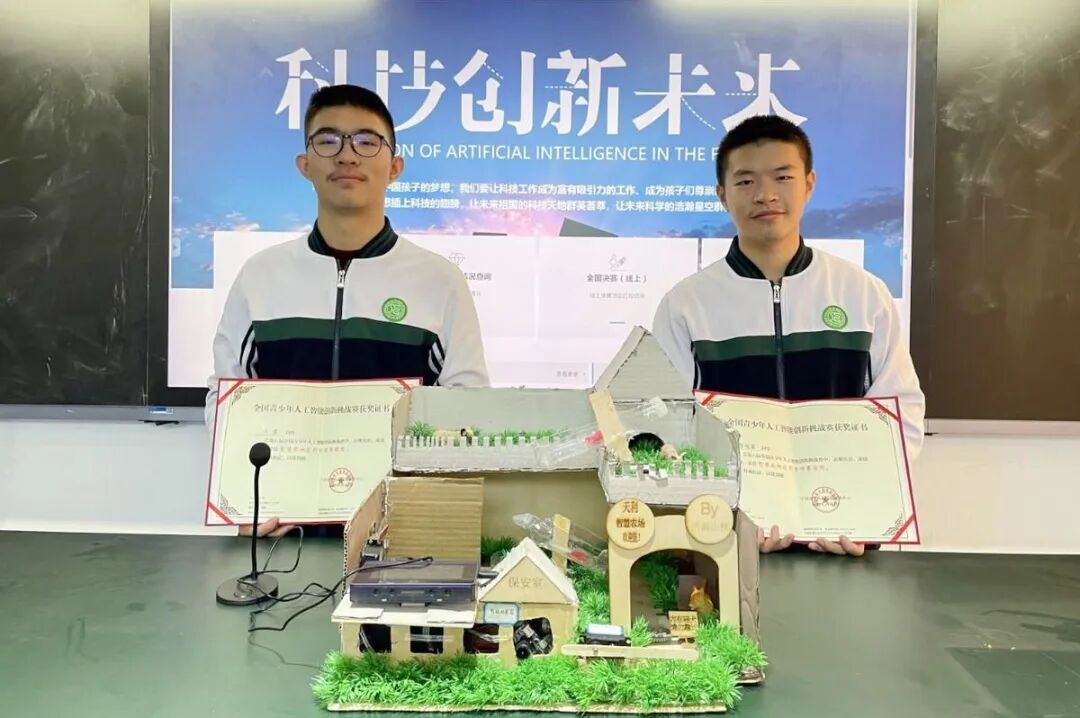 在第六届全国青少年人工智能创新挑战赛中,高二(6)班陈俊霖、高二(2)班山盟同学分别获得金奖和银奖。