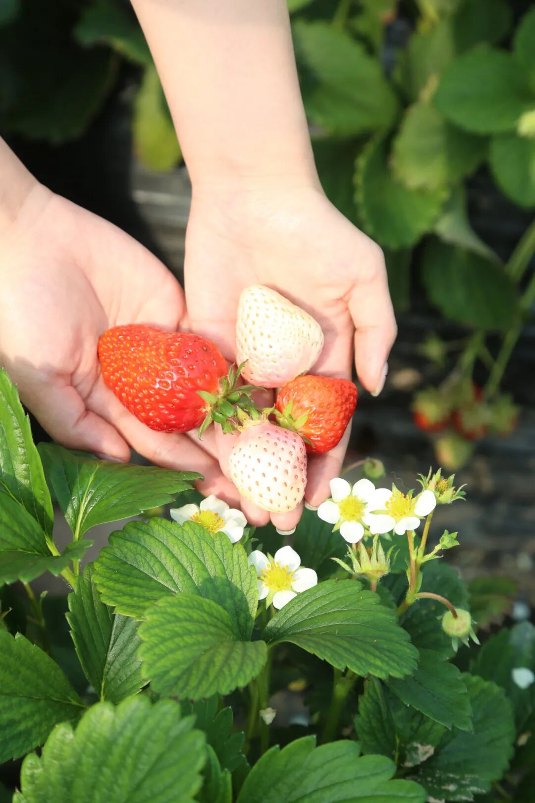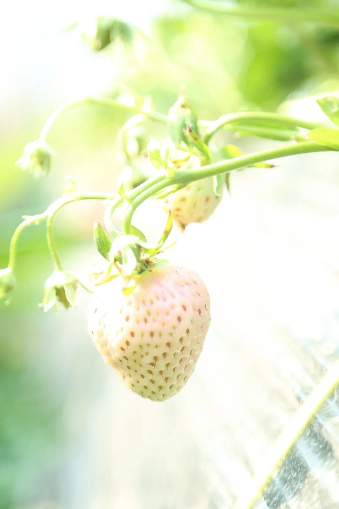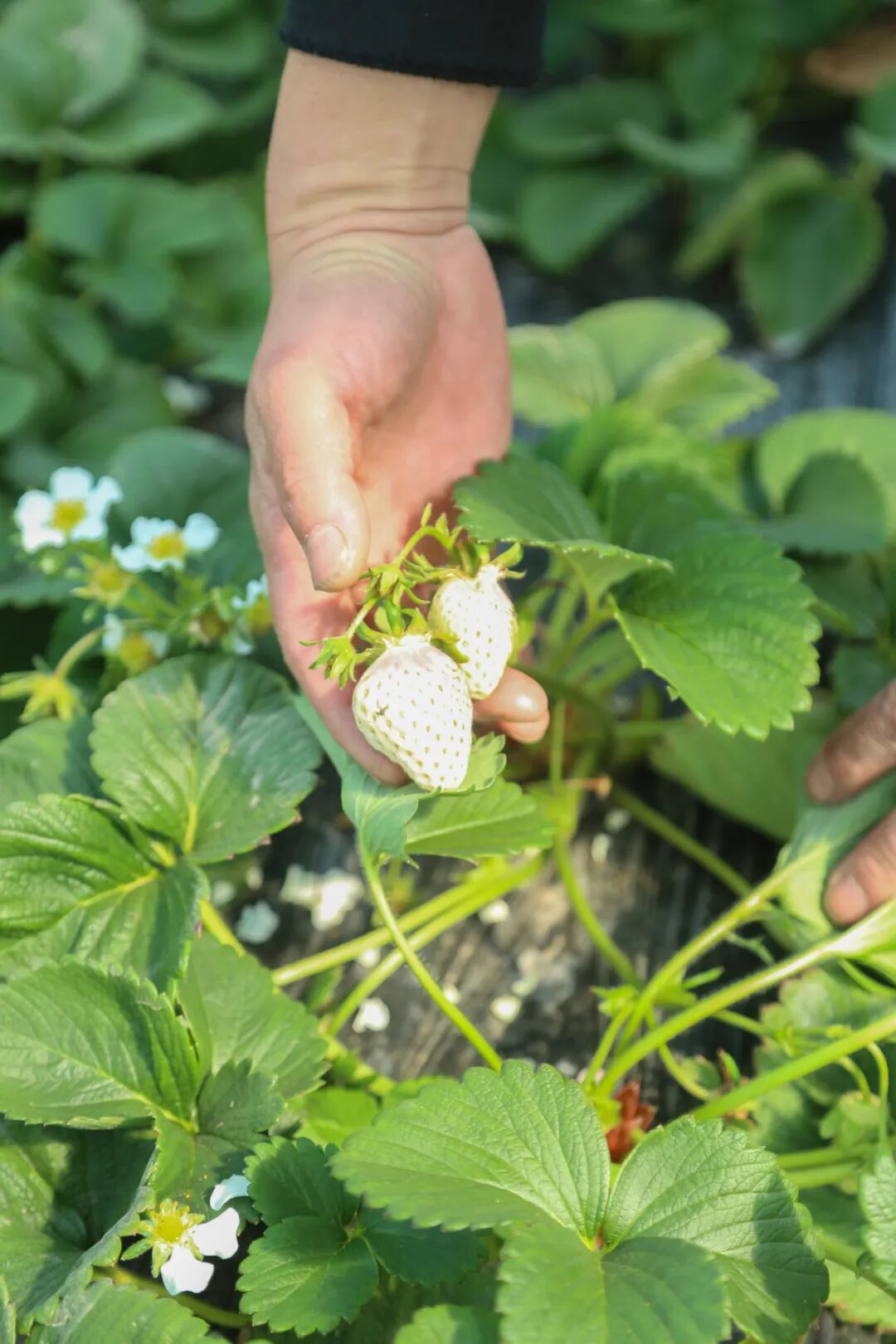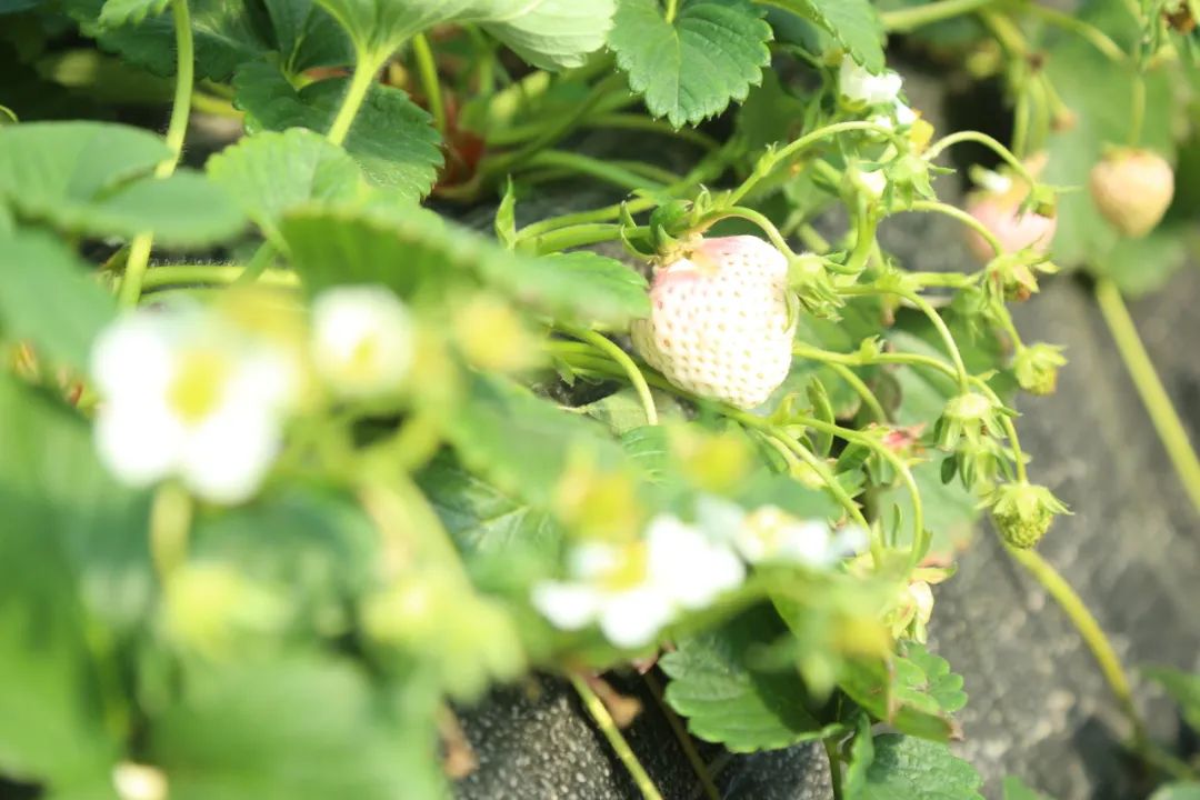 “这个白色草莓叫梦之莹,口感好,纯甜!”翠绿的草莓茎上挂着一颗颗白色草莓,这是周述龙种植的新品种。除了延续酸甜口味的红颜草莓,今年他还种植了红色纯甜的随珠,白色高端新品草莓粉玉和梦之莹。