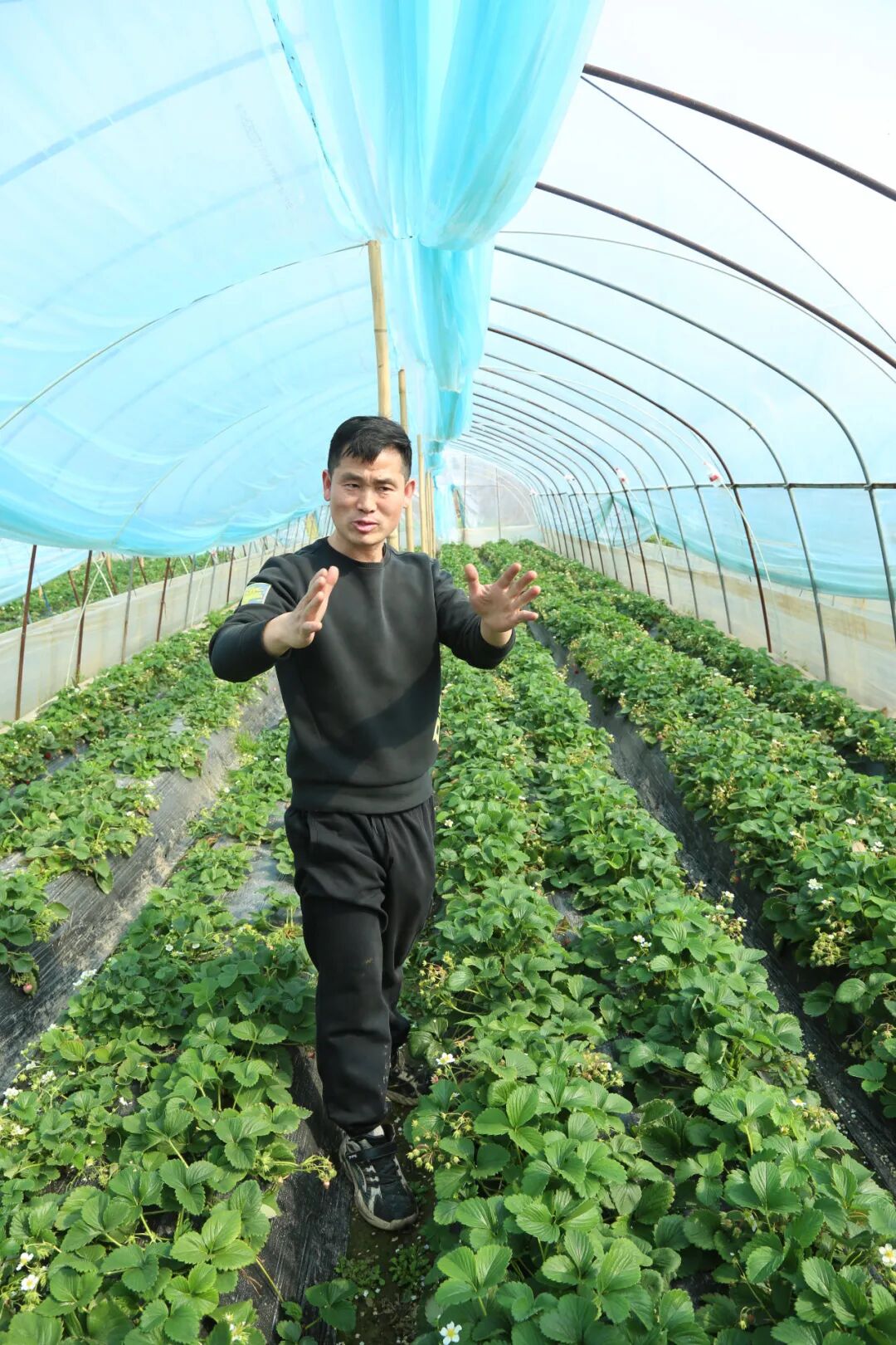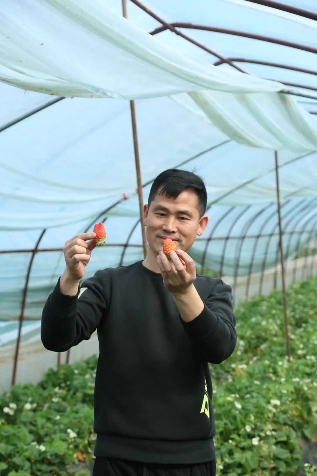 2023年,周述龙首次尝试种草莓,靠着自己的努力,每个大棚净利润达到1万多元,这让老父亲服了气,安心让他放手干。叔叔由于年龄大了,今年干脆也把田地交给周述龙种草莓,共同奔赴“莓”好生活。