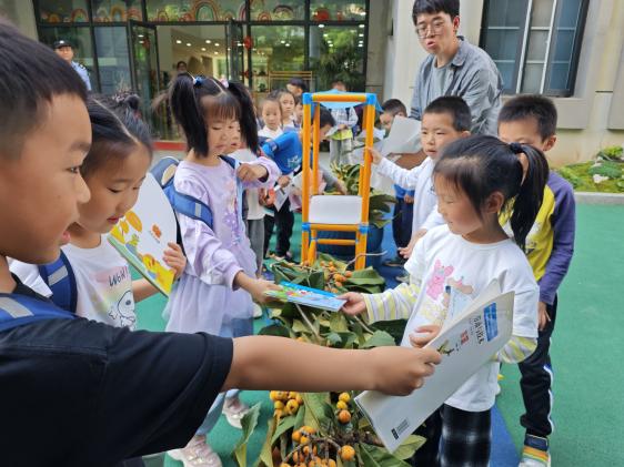 “其他班小朋友也想吃枇杷怎么办?”、“那就让他们用图书来换取枇杷吧。”幼儿园正在开展“图书漂流”活动,大二班的小朋友们希望用自己的劳动为幼儿园收集更多有趣又好看的图画书,于是一场别开生面的“摘枇杷换图书”的活动油然而生。