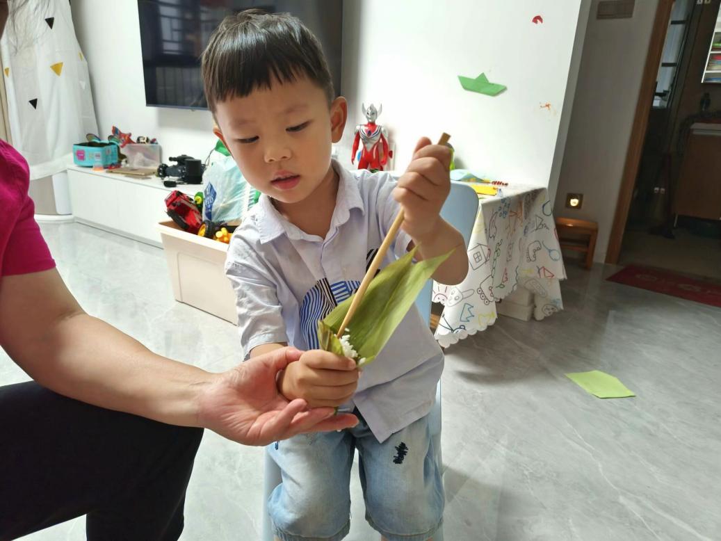 端午少不了包粽子,邀请家长在家指导孩子学习包粽子,这一活动不仅让孩子们感受到了包粽子的乐趣,还增进了亲子之间的感情。